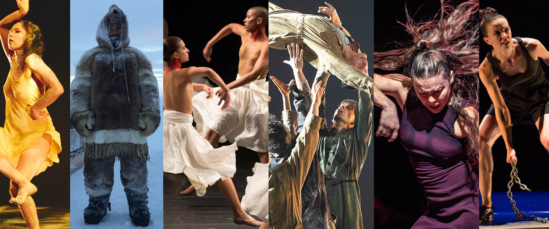 Top photos L-R: Bangarra Dance Theatre, photo Edward Mulvihill; Artcirq, 7 Fingers and Taqqut Productions; Grupo Corpo, photo Jose Luiz Pederneiras; RUBBERBAND, photo Marie-Noëlle Pilion; Compañía Rocío Molina, photo Simone Fratini.